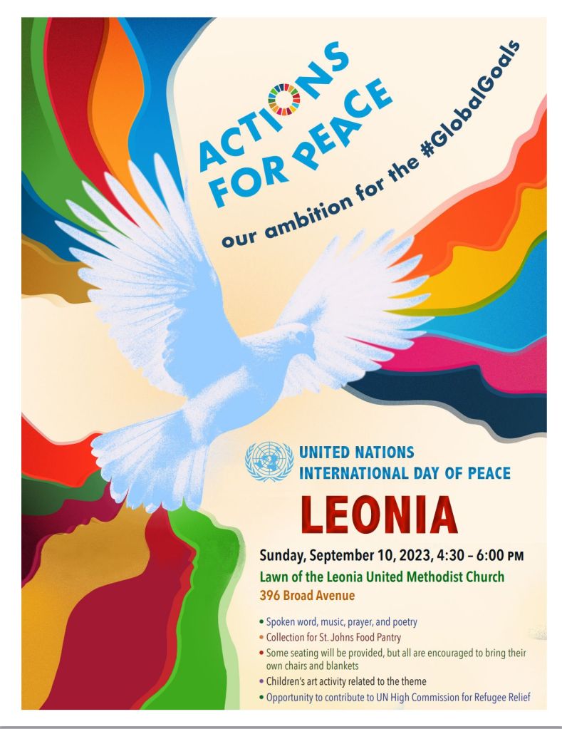 Sunday, September 10, 2023, 4:30pm-6pm, Leonia United Methodist Church 396 Broad Avenue, Leonia NJ