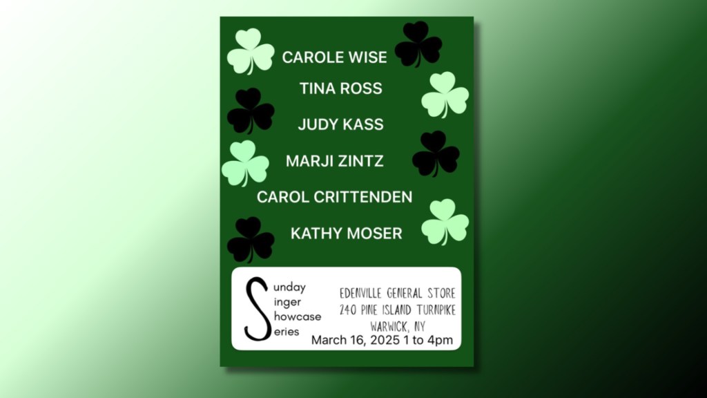 Sunday, March 16, 1pm-4pm: Edenville General Store, 240 Pine Island Turnpike, Warwick, NY. Click here for event link.