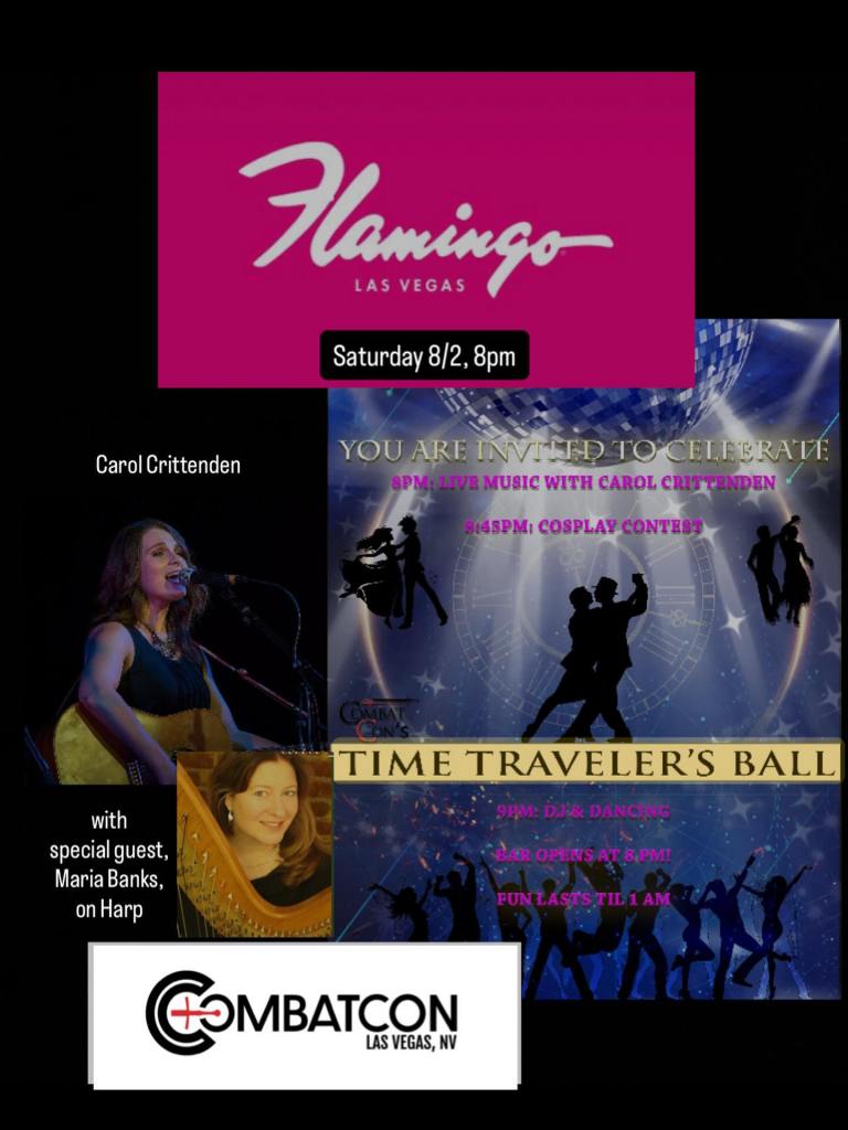 Saturday, August 2, 2025, 8pm – Carol is playing some live music with harpist, Maria Banks, at this fun private event. Celtic, Covers, Originals! https://www.combatcon.com/