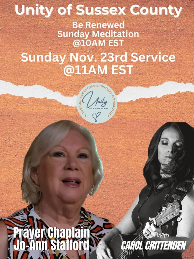 Sunday, November 23, 2025: Carol provides musical inspiration at Unity Of Sussex, 25 Mudcut Road, Lafayette, NJ, United States, New Jersey and Online: